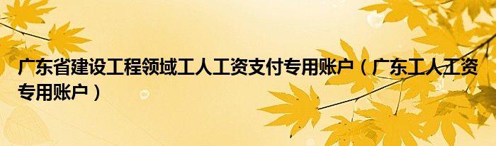 您好,今天帅帅来为大家解答以上的问题。广东省建设工程领域工人工资支付专用账户,广东工人工资专用账户相信很多小伙伴还不知道,现在让我们一起来看看吧!