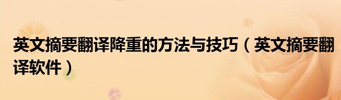 您好,今天帅帅来为大家解答以上的问题。英文摘要翻译降重的方法与技巧,英文摘要翻译软件相信很多小伙伴还不知道,现在让我们一起来看看吧!