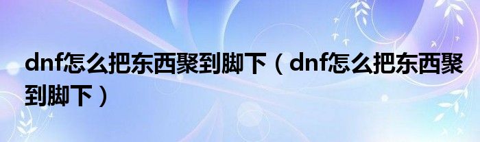 dnf怎么把东西聚到脚下(dnf怎么把东西聚到脚下),卡到崩溃,求给个解决方法!