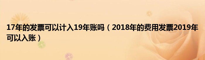 您好,今天帅帅来为大家解答以上的问题。17年的发票可以计入19年账吗,2018年的费用发票2019年可以入账相信很多小伙伴还不知道,现在让我们一起来看看吧!