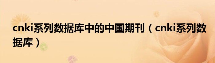 cnki系列数据库中的中国期刊(cnki系列数据库),急!求解答,求别忽视我的问题!