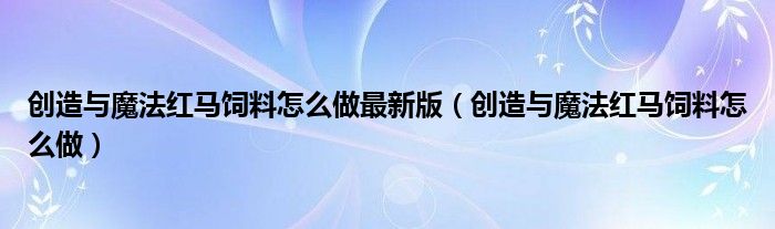您好,今天帅帅来为大家解答以上的问题。创造与魔法红马饲料怎么做最新版,创造与魔法红马饲料怎么做相信很多小伙伴还不知道,现在让我们一起来看看吧!