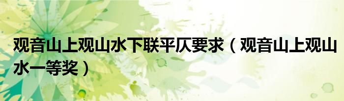 您好,今天帅帅来为大家解答以上的问题。观音山上观山水下联平仄要求,观音山上观山水一等奖相信很多小伙伴还不知道,现在让我们一起来看看吧!