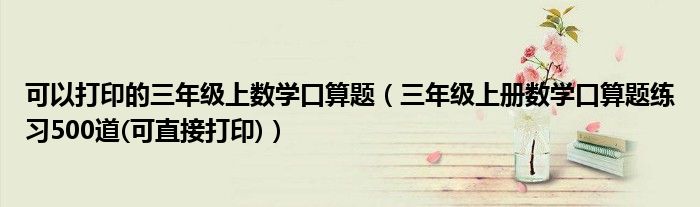您好,今天帅帅来为大家解答以上的问题。可以打印的三年级上数学口算题,三年级上册数学口算题练习500道(可直接打印)相信很多小伙伴还不知道,现在让我们一起来看看吧!