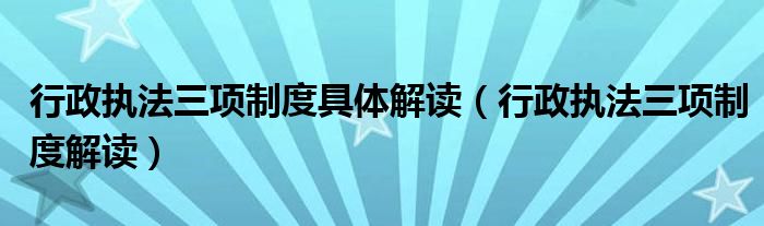 您好,今天帅帅来为大家解答以上的问题。行政执法三项制度具体解读,行政执法三项制度解读相信很多小伙伴还不知道,现在让我们一起来看看吧!
