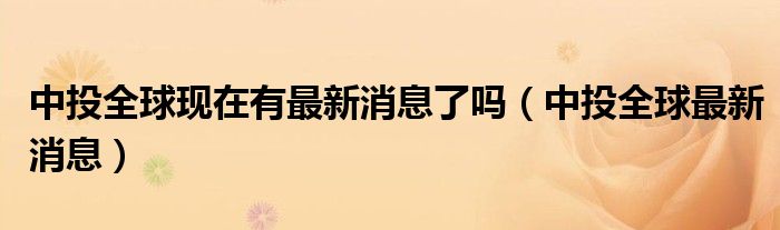 您好,今天帅帅来为大家解答以上的问题。中投全球现在有最新消息了吗,中投全球最新消息相信很多小伙伴还不知道,现在让我们一起来看看吧!