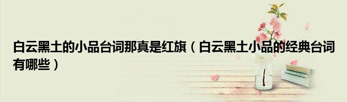您好,今天帅帅来为大家解答以上的问题。白云黑土的小品台词那真是红旗,白云黑土小品的经典台词有哪些相信很多小伙伴还不知道,现在让我们一起来看看吧!
