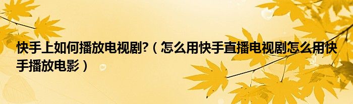 您好,今天帅帅来为大家解答以上的问题。快手上如何播放电视剧?,怎么用快手直播电视剧怎么用快手播放电影相信很多小伙伴还不知道,现在让我们一起来看看吧!