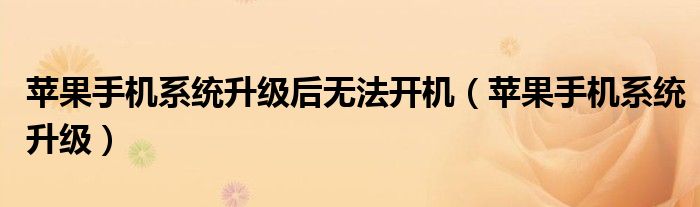 您好,今天帅帅来为大家解答以上的问题。苹果手机系统升级后无法开机,苹果手机系统升级相信很多小伙伴还不知道,现在让我们一起来看看吧!