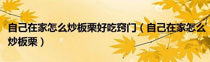 您好,今天帅帅来为大家解答以上的问题。自己在家怎么炒板栗好吃窍门,自己在家怎么炒板栗相信很多小伙伴还不知道,现在让我们一起来看看吧!