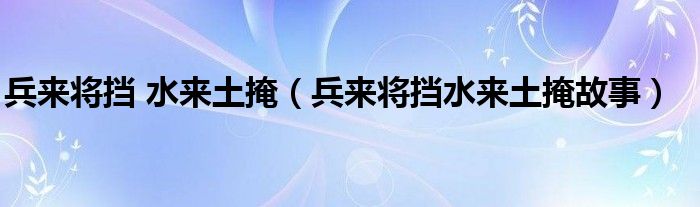 2、出自:元·无名氏《大战邳彤》:“主公,便好这兵来将挡,水来土掩。