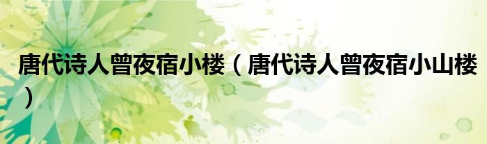 您好,今天帅帅来为大家解答以上的问题。唐代诗人曾夜宿小楼,唐代诗人曾夜宿小山楼相信很多小伙伴还不知道,现在让我们一起来看看吧!