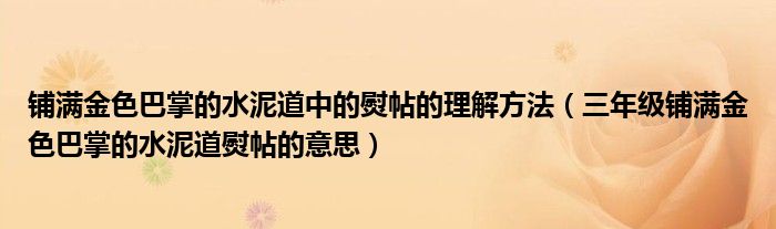 您好,今天帅帅来为大家解答以上的问题。铺满金色巴掌的水泥道中的熨帖的理解方法,三年级铺满金色巴掌的水泥道熨帖的意思相信很多小伙伴还不知道,现在让我们一起来看看吧!
