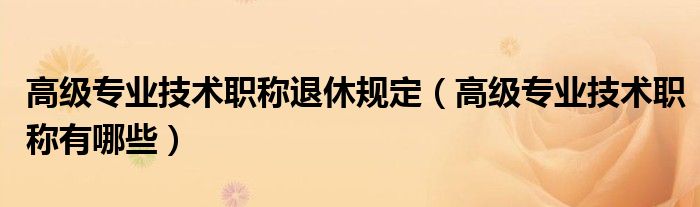 高级专业技术职称退休规定(高级专业技术职称有哪些),有没有人理理我呀?急死啦!