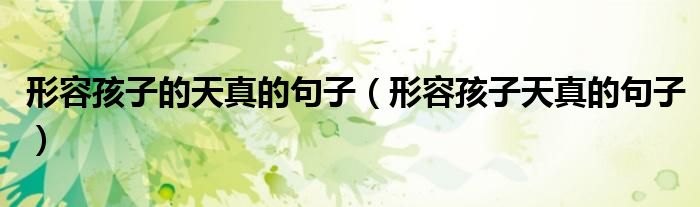 您好,今天帅帅来为大家解答以上的问题。形容孩子的天真的句子,形容孩子天真的句子相信很多小伙伴还不知道,现在让我们一起来看看吧!