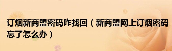 您好,今天帅帅来为大家解答以上的问题。订烟新商盟密码咋找回,新商盟网上订烟密码忘了怎么办相信很多小伙伴还不知道,现在让我们一起来看看吧!