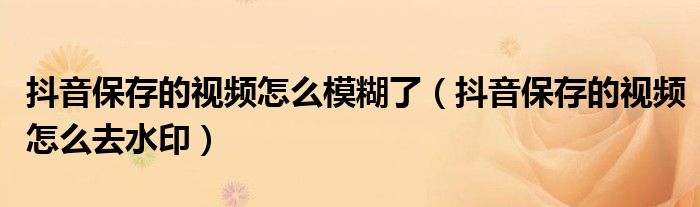 抖音保存的视频怎么模糊了(抖音保存的视频怎么去水印),求解答求解答,重要的事说两遍!
