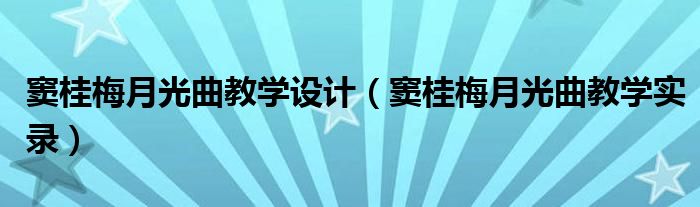 您好,今天帅帅来为大家解答以上的问题。窦桂梅月光曲教学设计,窦桂梅月光曲教学实录相信很多小伙伴还不知道,现在让我们一起来看看吧!
