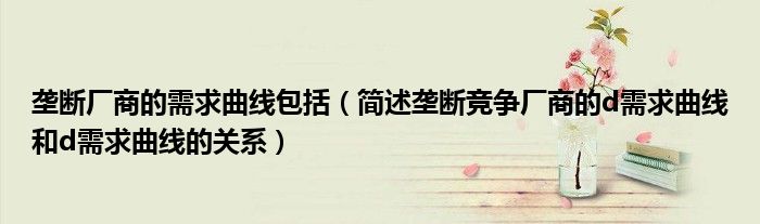 您好,今天帅帅来为大家解答以上的问题。垄断厂商的需求曲线包括,简述垄断竞争厂商的d需求曲线和d需求曲线的关系相信很多小伙伴还不知道,现在让我们一起来看看吧!