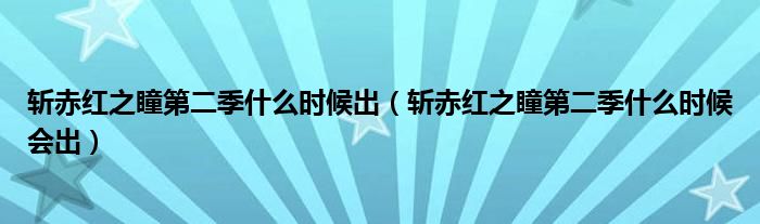 斩赤红之瞳第二季什么时候出(斩赤红之瞳第二季什么时候会出),快截止了,麻烦给个答案吧!