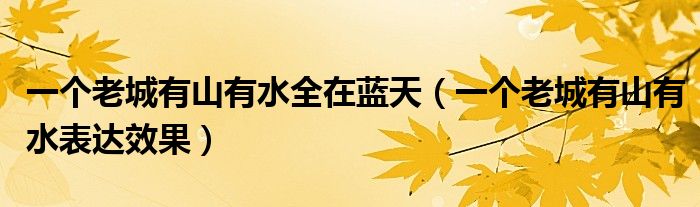 您好,今天帅帅来为大家解答以上的问题。一个老城有山有水全在蓝天,一个老城有山有水表达效果相信很多小伙伴还不知道,现在让我们一起来看看吧!