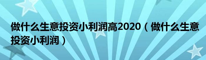 您好,今天帅帅来为大家解答以上的问题。做什么生意投资小利润高2020,做什么生意投资小利润相信很多小伙伴还不知道,现在让我们一起来看看吧!