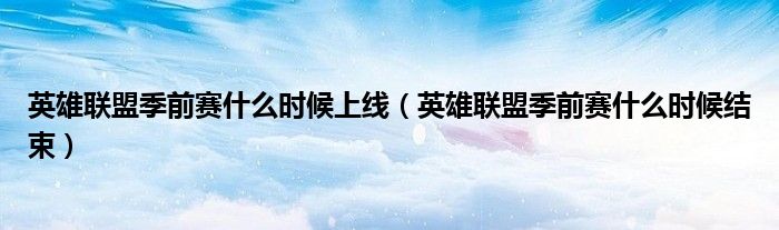 您好,今天帅帅来为大家解答以上的问题。英雄联盟季前赛什么时候上线,英雄联盟季前赛什么时候结束相信很多小伙伴还不知道,现在让我们一起来看看吧!