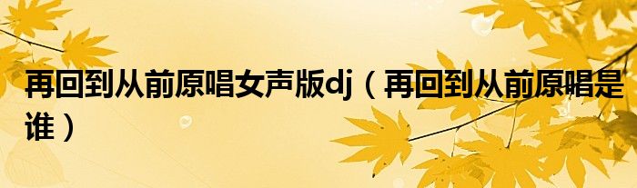 您好,今天帅帅来为大家解答以上的问题。再回到从前原唱女声版dj,再回到从前原唱是谁相信很多小伙伴还不知道,现在让我们一起来看看吧!