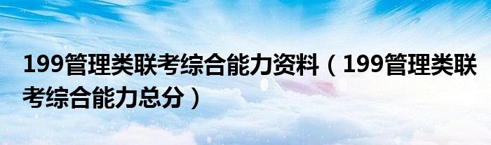 您好,今天帅帅来为大家解答以上的问题。199管理类联考综合能力资料,199管理类联考综合能力总分相信很多小伙伴还不知道,现在让我们一起来看看吧!