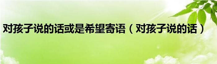 您好,今天帅帅来为大家解答以上的问题。对孩子说的话或是希望寄语,对孩子说的话相信很多小伙伴还不知道,现在让我们一起来看看吧!