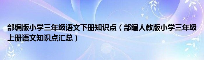 您好,今天帅帅来为大家解答以上的问题。部编版小学三年级语文下册知识点,部编人教版小学三年级上册语文知识点汇总相信很多小伙伴还不知道,现在让我们一起来看看吧!