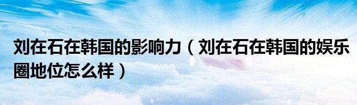 1、刘在石在韩国的地位被同称作国民MC的虎东曾经肯定过:“他对韩国娱乐圈太重要了,他带红许多的新人,只要有他在韩国的演艺事业就会最高、最高、最高”对于刘在石之所以能够取得现在的成就归根到底只是因为四个字:德艺双馨!刘在石在韩国的地位相当高,有一项关于韩国最具影响力的排名,他位于第二,他现在是韩国的国民MC,最近百度百科年度明星为他写的导语是“他是待人真诚的礼仪教科书,是在节目中机智幽默的放送支柱,他对每一个节目都倾注精力与热情全力以赴,他说能为观众带来欢乐就是我的幸福。