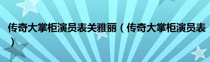 您好,今天帅帅来为大家解答以上的问题。传奇大掌柜演员表关雅丽,传奇大掌柜演员表相信很多小伙伴还不知道,现在让我们一起来看看吧!