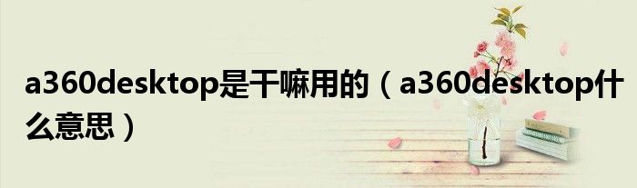 您好,今天帅帅来为大家解答以上的问题。a360desktop是干嘛用的,a360desktop什么意思相信很多小伙伴还不知道,现在让我们一起来看看吧!