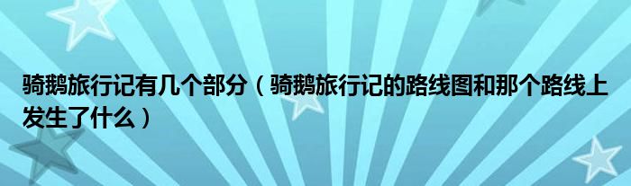 您好,今天帅帅来为大家解答以上的问题。骑鹅旅行记有几个部分,骑鹅旅行记的路线图和那个路线上发生了什么相信很多小伙伴还不知道,现在让我们一起来看看吧!