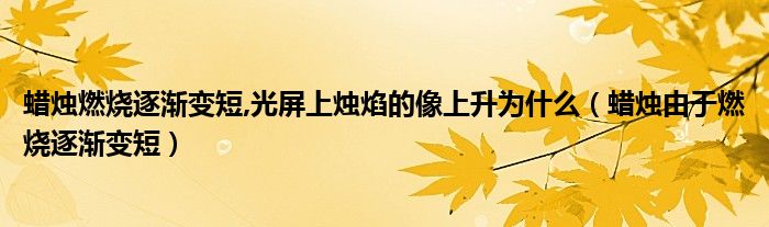 您好,今天帅帅来为大家解答以上的问题。蜡烛燃烧逐渐变短,光屏上烛焰的像上升为什么,蜡烛由于燃烧逐渐变短相信很多小伙伴还不知道,现在让我们一起来看看吧!