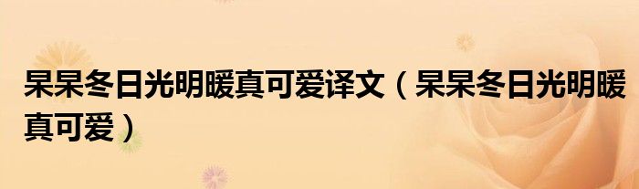 您好,今天帅帅来为大家解答以上的问题。杲杲冬日光明暖真可爱译文,杲杲冬日光明暖真可爱相信很多小伙伴还不知道,现在让我们一起来看看吧!