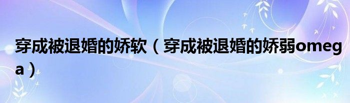 穿成被退婚的娇软(穿成被退婚的娇弱omega),急!求解答,求别让我失望!