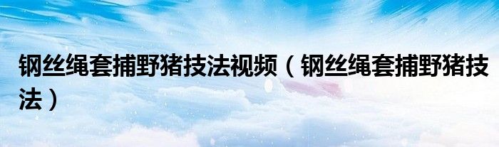 钢丝绳套捕野猪技法视频(钢丝绳套捕野猪技法),急!求解答,求不敷衍我!