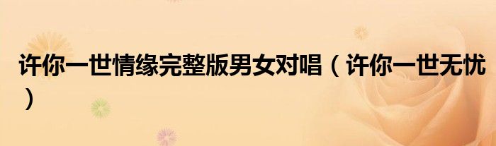 您好,今天帅帅来为大家解答以上的问题。许你一世情缘完整版男女对唱,许你一世无忧相信很多小伙伴还不知道,现在让我们一起来看看吧!