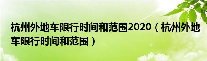 您好,今天帅帅来为大家解答以上的问题。杭州外地车限行时间和范围2020,杭州外地车限行时间和范围相信很多小伙伴还不知道,现在让我们一起来看看吧!