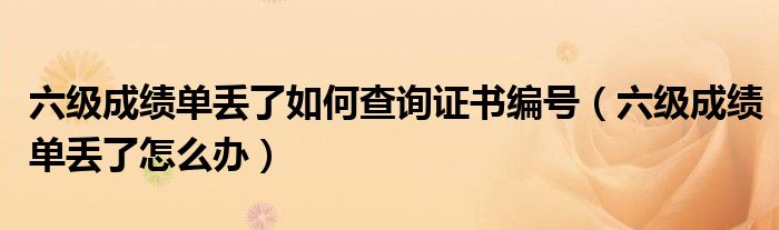 您好,今天帅帅来为大家解答以上的问题。六级成绩单丢了如何查询证书编号,六级成绩单丢了怎么办相信很多小伙伴还不知道,现在让我们一起来看看吧!