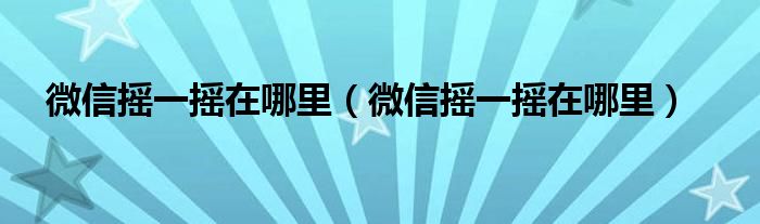 您好,今天帅帅来为大家解答以上的问题。微信摇一摇在哪里,微信摇一摇在哪里相信很多小伙伴还不知道,现在让我们一起来看看吧!