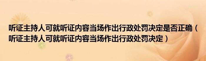 您好,今天帅帅来为大家解答以上的问题。听证主持人可就听证内容当场作出行政处罚决定是否正确,听证主持人可就听证内容当场作出行政处罚决定相信很多小伙伴还不知道,现在让我们一起来看看吧!