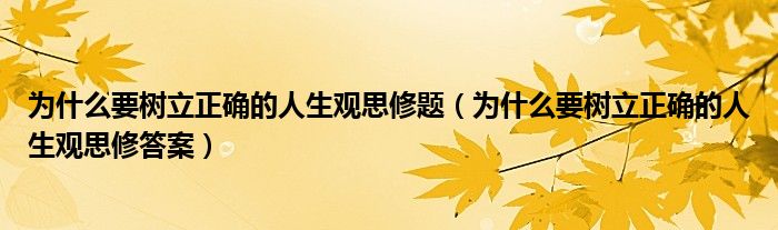 您好,今天帅帅来为大家解答以上的问题。为什么要树立正确的人生观思修题,为什么要树立正确的人生观思修答案相信很多小伙伴还不知道,现在让我们一起来看看吧!