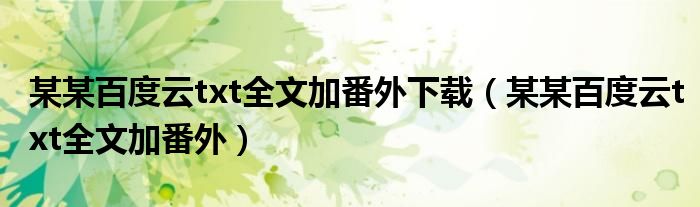 某某百度云txt全文加番外下载(某某百度云txt全文加番外),有没有大佬愿意带带我?求帮忙!