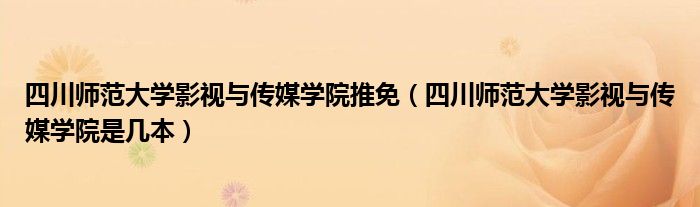 您好,今天帅帅来为大家解答以上的问题。四川师范大学影视与传媒学院推免,四川师范大学影视与传媒学院是几本相信很多小伙伴还不知道,现在让我们一起来看看吧!