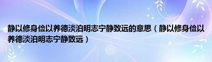 您好,今天帅帅来为大家解答以上的问题。静以修身俭以养德淡泊明志宁静致远的意思,静以修身俭以养德淡泊明志宁静致远相信很多小伙伴还不知道,现在让我们一起来看看吧!