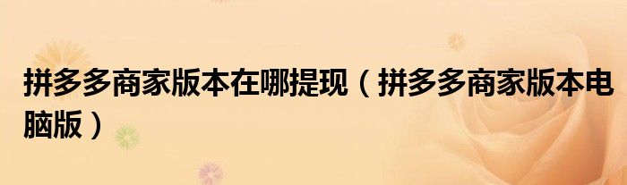 拼多多商家版本在哪提现(拼多多商家版本电脑版),求路过的大神留个言,帮个忙!