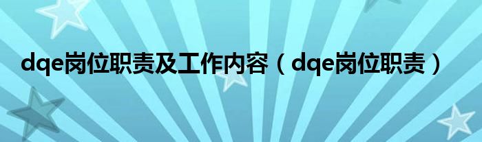 您好,今天帅帅来为大家解答以上的问题。dqe岗位职责及工作内容,dqe岗位职责相信很多小伙伴还不知道,现在让我们一起来看看吧!